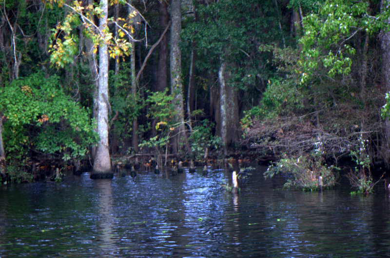 It’s funny how the scenery can change along the way. From Osprey Marina to Georgetown, we passed through a wooded swampy area. Spooky and with tannic, brackish water (mixture of salt and fresh water which is clear but takes on a brown hue from the surrounding plants). From Georgetown to Charlestown, we passed through low areas (the low country). Check out the screen from the chartplotter; it clearly shows the swampy and low areas around the channel of water we are traveling through — part of the reason it is known as “the ditch”.