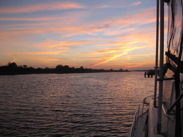 We jumped down through Georgia. Had our first anchoring out experience, but had another problem with the windlass. Had a few harrowing, difficult minutes as Artie had to haul up the chain by hand. He was not a happy camper. Then went over to Brunswick Landing marina. Really a great marina. Lots of liveaboards, terrific staff. Great place to spend some time. They have three clubhouses, free laundry, walking distance to town, a keg of beer in the clubhouse free each day, and wine happy hour three nights a week. Really a great community feeling here. Left there this morning, and we are in Jacksonville, FL tonight.