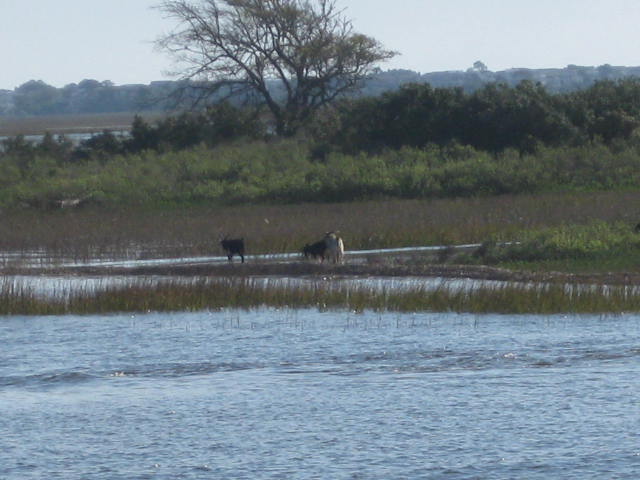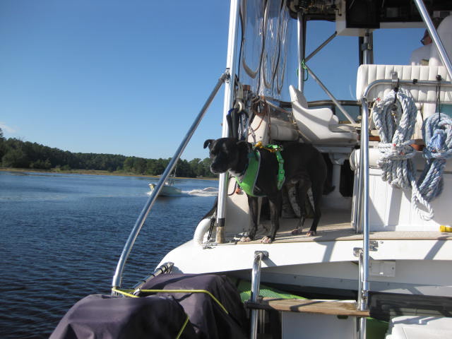 We’ve moved a few times lately in North and South Carolina. At the Bridgetender Marina in Wrightsville Beach, we were along the face dock. Never knew our boat could look like a dingy, compared to some of the other boats there. Very good restaurant, too. Also stopped at Ocean Isle, where we caught a nice sunset. We are currently at Osprey Marina, where there are goats in a pen from the nearby zoo, and a walkway next to a swamp. The skipper doesn’t know what to make of half of what he sees. He did decide to become the great explorer and jump into the swamp — and he did get a bath that night.